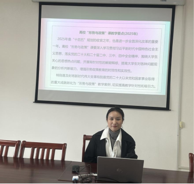 为深入理解和把握党的二十届四中全会精神,提升《形势与政策课》课程教学质量,11月5日,我院召开2025-2026学年第一学期形势与政策集体备课会。会议由教研室主任祝玲琳博士主持,全体思政课教师参加。