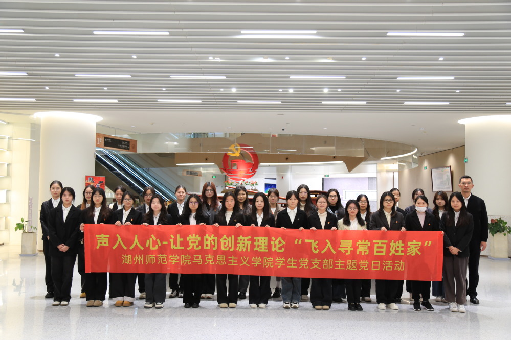 在嘉兴市党群服务中心,支部书记辛毅开展以“‘声入人心’——让党的创新理论‘飞入寻常百姓家’”为主题的微党课。辛老师结合红船精神与党的二十届四中全会精神展开学习,强调学习党的创新理论要原原本本学、全面准确学,要从学习实践中汲取奋进力量。他带领大家回顾了支部党建品牌的创建历程,并重点介绍了具体做法与培育成效,对支部成员提出殷切期望,希望大家争做党的二十届四中全会精神的“宣讲先锋”,将“理论深度”和“时代温度”相融合,用贴近同学的通俗表达传递好政策理论的温度。