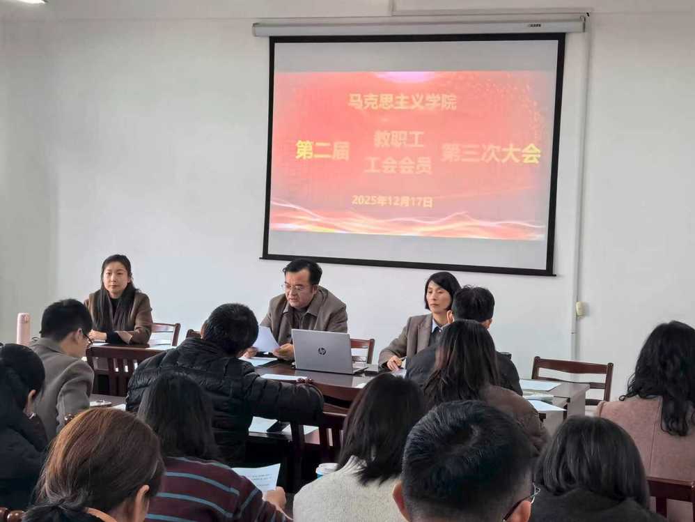 2025年12月17日,马克思主义学院在学院会议室隆重召开第二届教职工暨工会会员代表大会第三次会议。会议由学院党总支书记许金凤主持,37名正式代表参加,共商学院发展大计。大会严格按照民主程序,圆满完成各项议程。