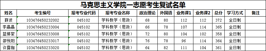湖州师范大学马克思主义学院2026年学科教学(思政)专业硕士第一志愿名单公示