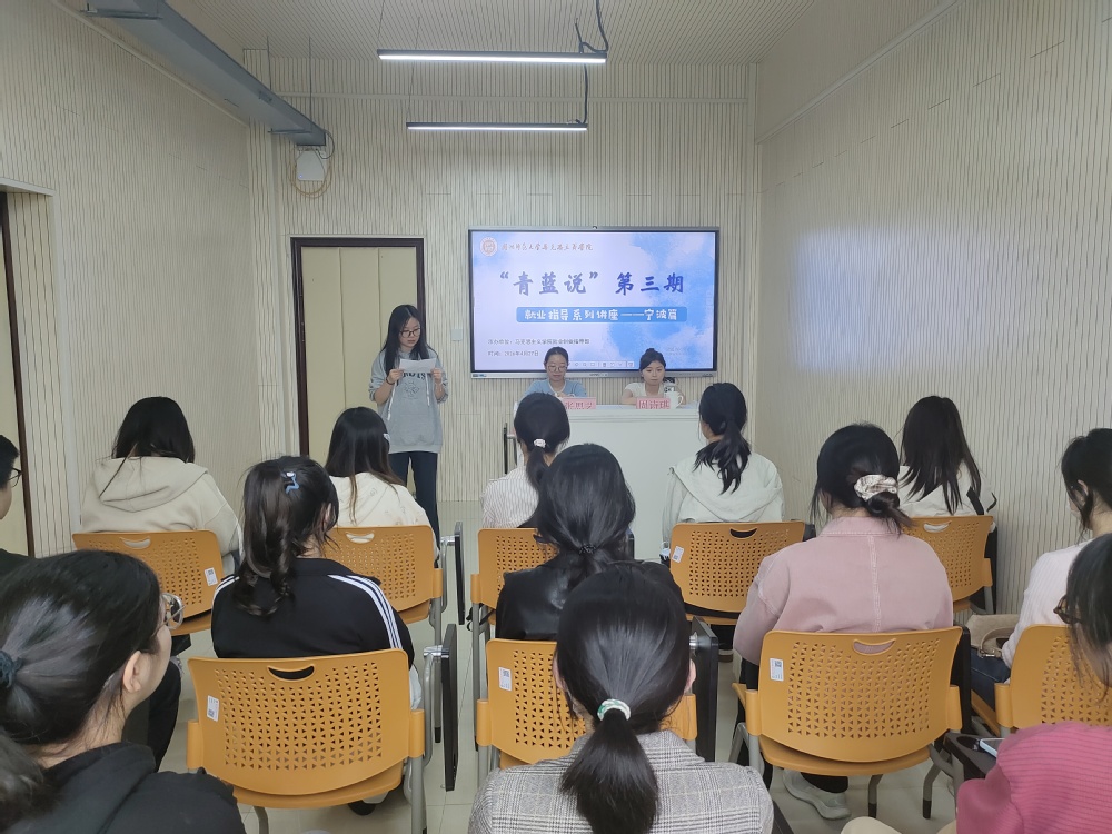 4月27日下午,学院第三期“青蓝说”就业经验分享会(宁波篇)在明德楼518教室成功举行。本次活动邀请签约宁波市北仑区教育局的周诗琪与签约宁波市镇海区龙赛中学的张思艺两位2026届毕业生担任主讲人,为同学们带来了干货满满的教师招聘备考经验分享。
